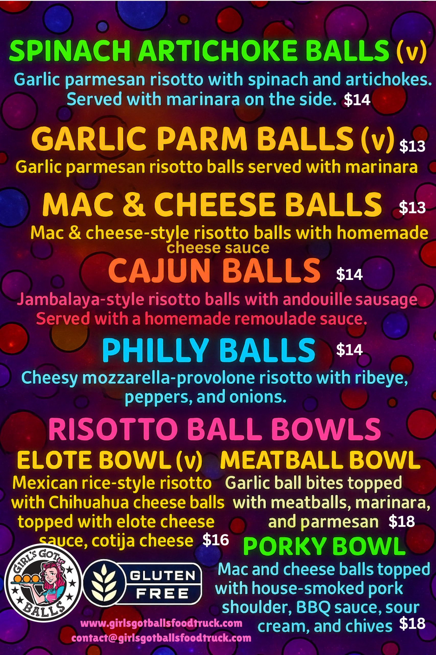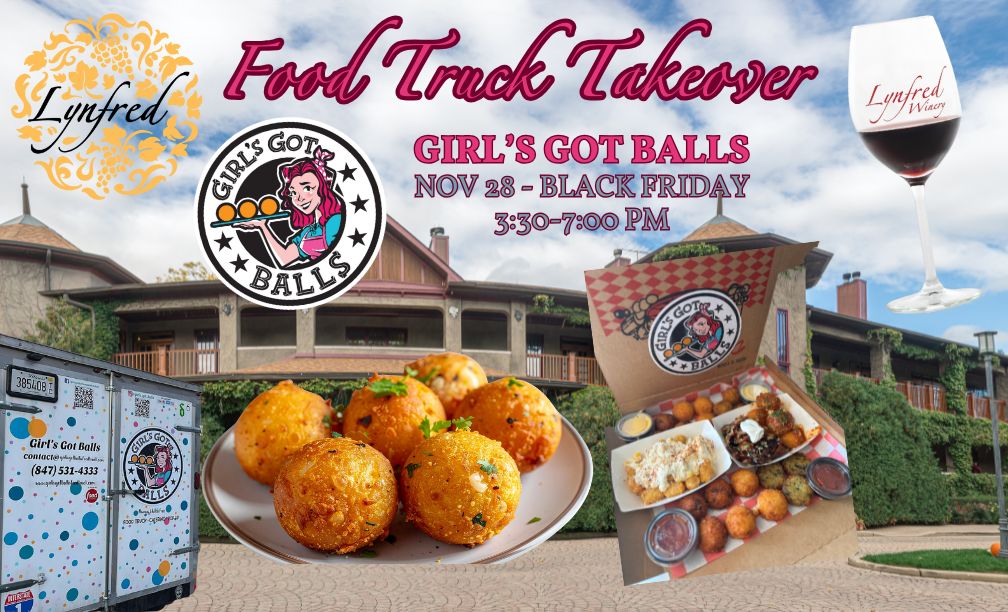 From Food Network’s Great Food Truck Race to our winery, Girl’s Got Balls is bringing their legendary bites to Lynfred! These aren’t just meatballs — they’re bold, flavor-packed creations like Artichoke Parmesan, Cajun, Garlic Parmesan, Philly, Risotto, Mac ’n’ Cheese, and more. There are also many vegetarian and gluten-free options!