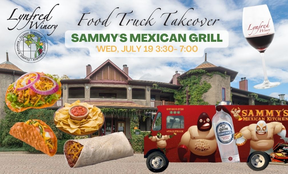 Sammy’s will be rolling up to Lynfred Winery to celebrate Wine Wednesday with us! Order a glass of wine and enjoy wine and Mexican fare on the patios until 7 pm. Don’t have time to hang out? Grab some tacos and a bottle of wine to take home! MENU