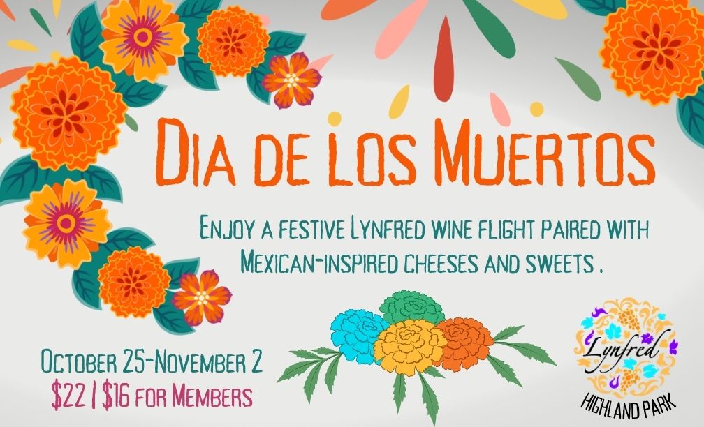 Join us in Downtown Highland Park as we honor Día de los Muertos with a weeklong celebration of flavor and tradition. Enjoy a festive Lynfred wine flight paired with Mexican-inspired cheeses and sweets — a beautiful tribute to life, love, and good taste.