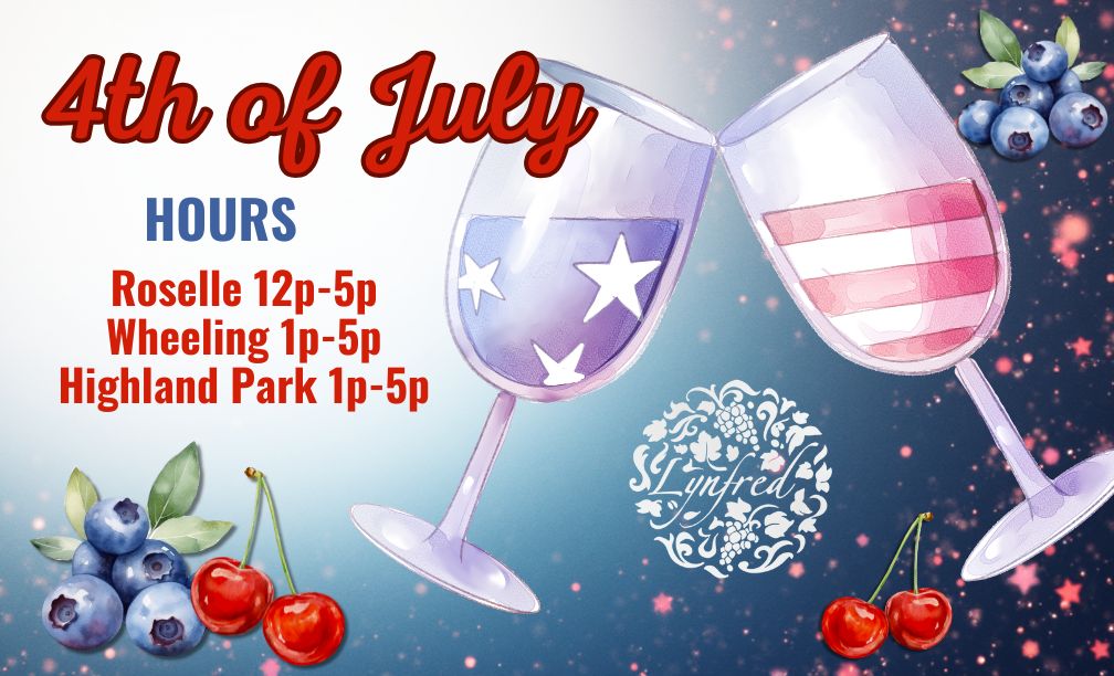 Independence Day Stop in for some red, white, and blue(berry)! Roselle 12p-5p Wheeling 1p-5p Highland Park 1p-5p + Add to Google Calendar + iCal / Outlook export 00 days 00 hours 00 minutes 00 seconds Date Jul 04 2026 Time All Day Category Holiday Share this event CartTypeVin de City Collection Anniversary Collection Gift Cards Events Reserves Gift Baskets Red Wine White Fruit Sparkling Ports Seasonal